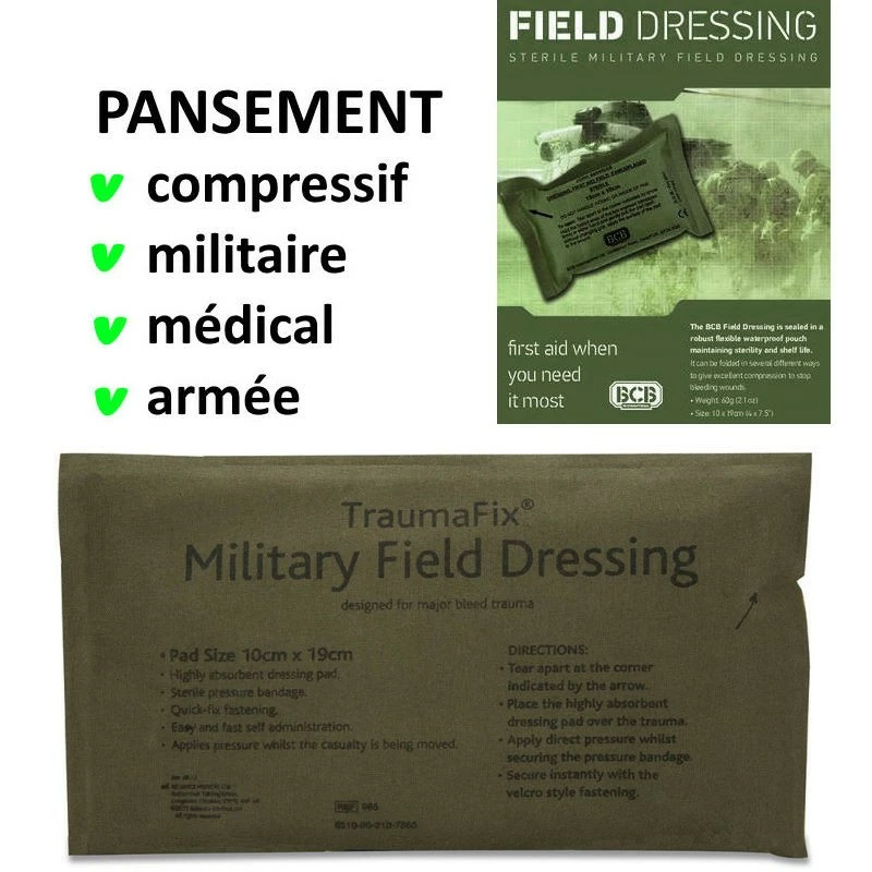 Le pansement Traumafix Military Field Dressing est le pansement compressif utilisé par l’armée britannique, par les forces spéciales et par les unités spécialisées dans les interventions d’urgence ou de secours. Avoir ce type de pansement de compression sur soi si l’on est victime d’une chute ou d’une blessure ayant entraînée une plaie béante peut s’avérer vital car ce pansement permet de maintenir la plaie fermée grâce à une compression suffisante. De plus, son installation est rapide et facile. Bon à savoir : il est également connu sous l’appellation de pansement de trauma ou de pansement traumatique.