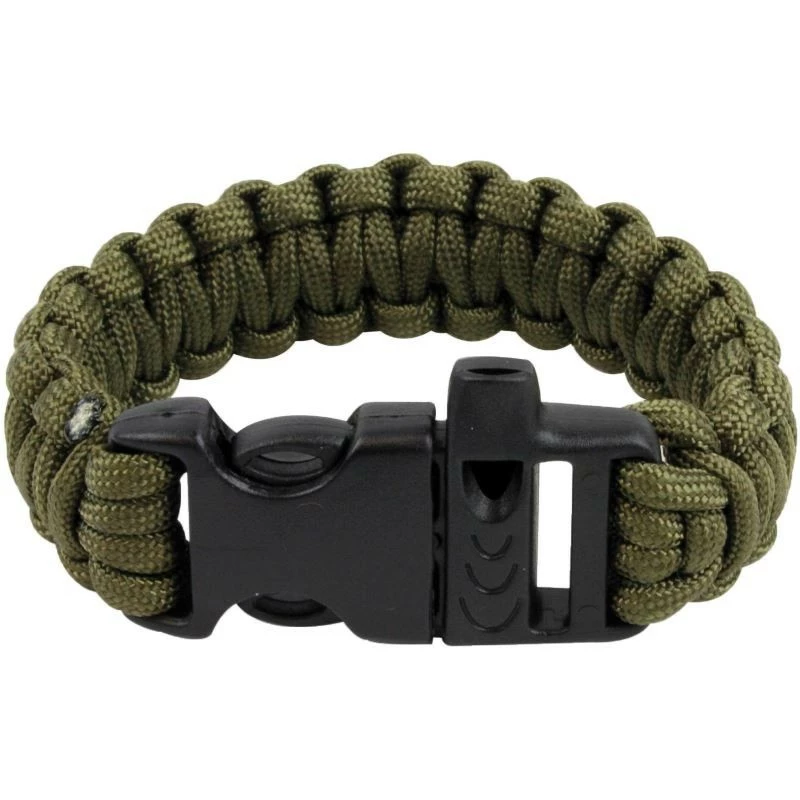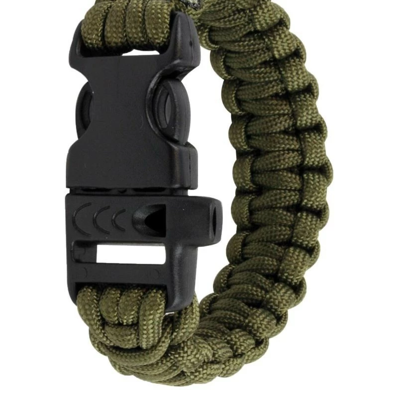 Le bracelet paracorde et sifflet Highlander Paracord QR Buckle vert en détail :