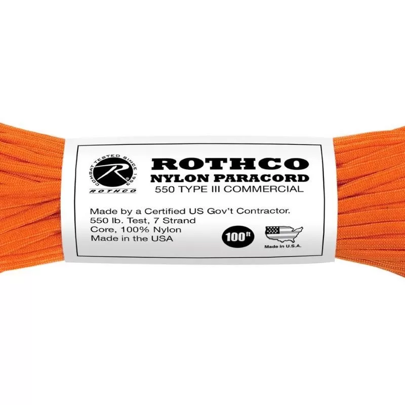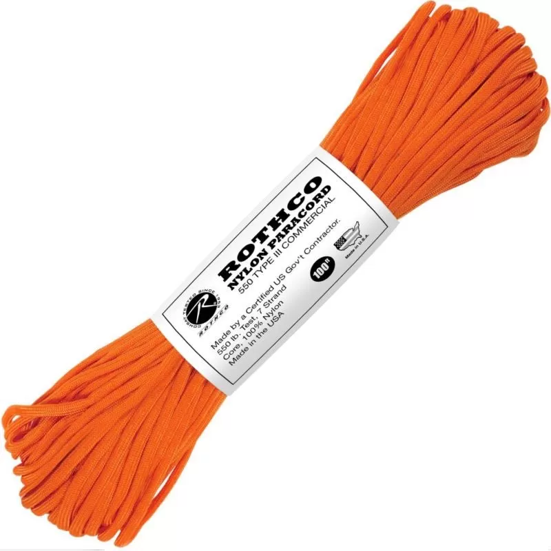 La paracorde 550 30 mètres Rothco Nylon Paracord orange en détail :