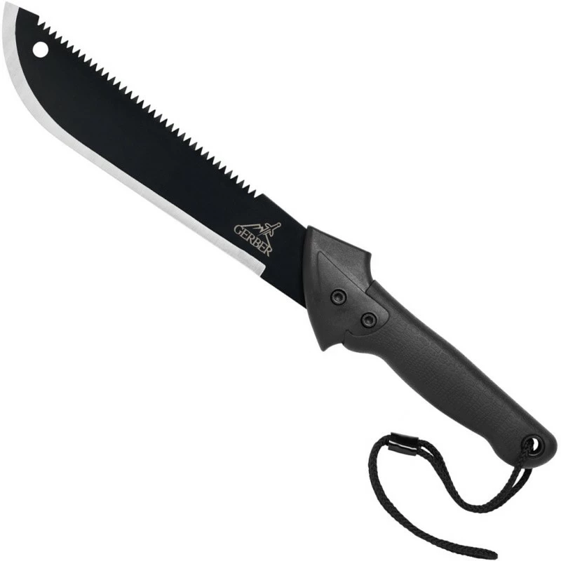 Avec le modèle Gerber Gator Junior, on a de la polyvalence : on a une vraie machette pour dégager les broussailles, chasser et cuisiner en mode survie, on a une vraie scie pour couper du bois et on un étui fourreau costaud pour un transport facile et sécuritaire. Pour information, la lame mesure 27 cm et le manche mesure 20 cm pour un poids total de 405 grammes. Rigide et résistante, la lame est en acier inoxydable avec une teneur en carbone augmentée. Texturé et confortable, le manche bénéficie d’une finition Gator Grip antiglisse pour un maximum de précision même dans des conditions humides. De plus, le manche est muni d’une dragonne.