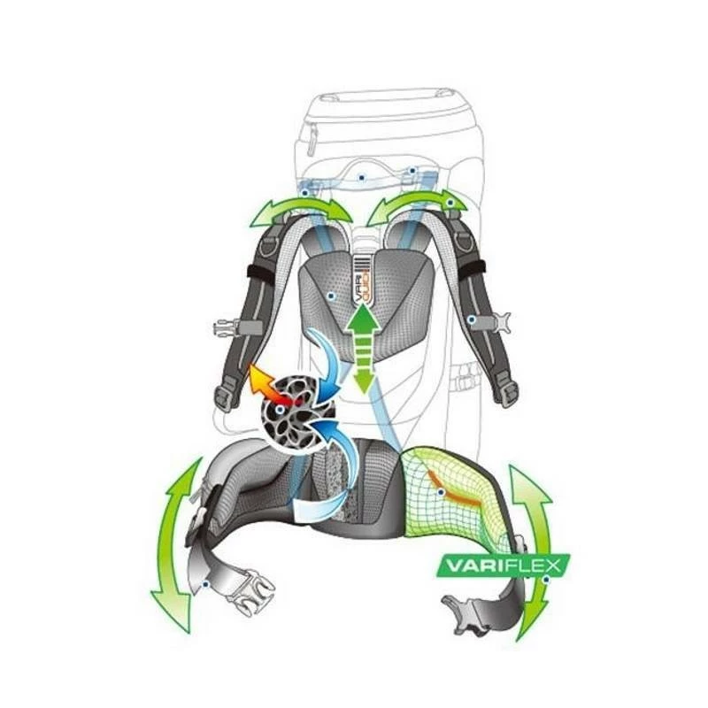 Le sac Aircontact 40+10 SL Deuter est bien agencé. Transportez une belle quantité de matériel à l’intérieur (8 poches) et à l’extérieur (nombreux porte-matériels). Les 7 poches s’organisent autour de la poche principale : 2 poches au dessus (dans le rabat), 1 grande poche en dessous (qui communique avec la poche principale), 3 poches sur les côtés et 1 poche sur la ceinture lombaire. Au total, le sac à dos Aircontact 40+10 SL Deuter a une capacité de stockage de 40 à 50 l. Les porte-matériels supportent volontiers le matériel qui ne rentre pas forcément dans les poches : tente et matelas, piolets et bâtons de trekking. Ils peuvent également accueillir une polaire ou une gourde, des skis ou des raquettes à neige. Le Deuter Aircontact 40+10 SL est un vrai sac à dos de randonnée, un vrai sac à dos de trekking.