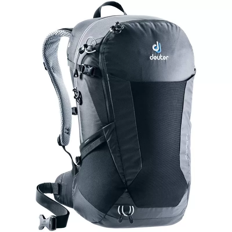 Une marche prolongée, un effort soutenu ou des températures un peu trop hautes peuvent entrainer de la transpiration et de l’inconfort au niveau du dos. Cela n’arrivera pas avec un sac à dos Futura 24 Deuter car c’est un sac muni d’un dos Aircomfort Sensic System avec un filet tendu au travers duquel l’air passe en continu. Le confort reste présent tout au long de la randonnée. Les bretelles ActiveFit s’ajustent en permanence à votre gabarit et à vos efforts. La ceinture lombaire reporte bien la charge si bien que le poids de votre chargement ne se ressent pas uniquement sur les épaules ou sur le dos mais également sur le bassin : le poids est réparti et le confort s’en trouve bien meilleur.