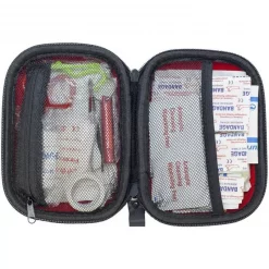 La trousse de secours Pharmavoyage Mini est également appelée trousse de premiers soins, trousse d’urgence ou trousse à pharmacie. Elle présente l’avantage d’un poids léger (255 grammes) et de dimensions passe-partout (15 cm de long, 12 cm de large, 5 cm d’épaisseur). L’équipement inclus permet de prodiguer les premiers soins sur de petites blessures ou de faire face aux petits imprévus et petits accrocs. Immédiatement visible au fond de votre sac à dos, dans un tiroir ou parmi votre matériel de randonnée, pratique grâce à ses rangements compartimentés, cette mini-trousse de secours offre une utilisation rapide : important en cas d’urgence. C’est la trousse de secours de randonnée par excellence.